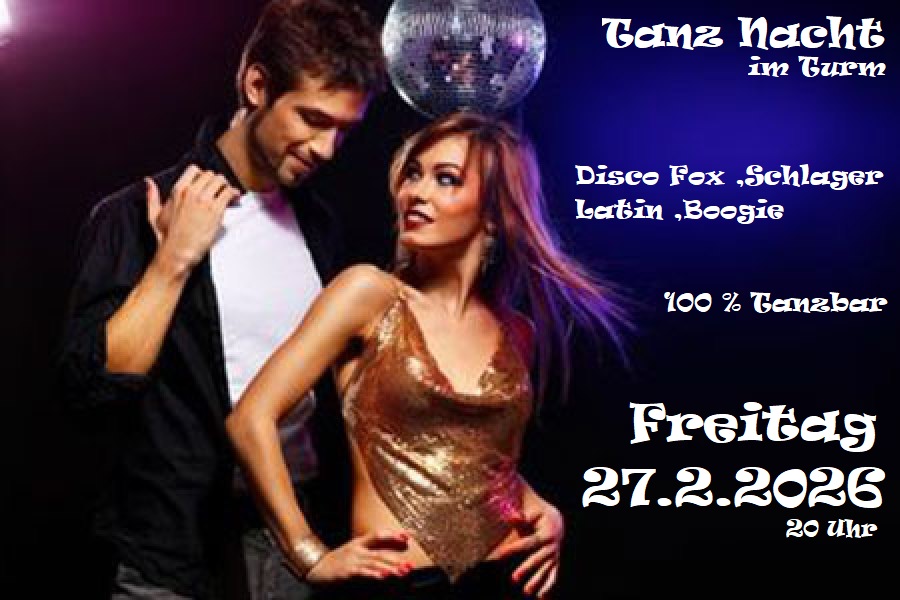 Hallo liebe Turm-Gäste aus nah und fern !Es ist so weit!! Auch im Turm oben wird nun getanzt!Tanze mit uns zum besten modernen Discofox-Mix !Feiern, Tanzen, Paartanz - Party wie in den wilden 70ern und 80ern bei uns im Turm .Eine Tanzreise durch die guten alten und neuen Zeiten !100 % Discofox , Schlager , […]